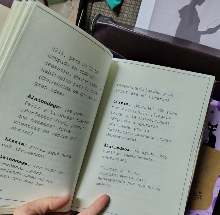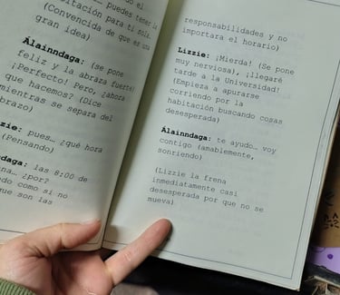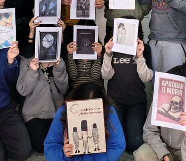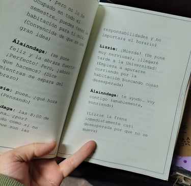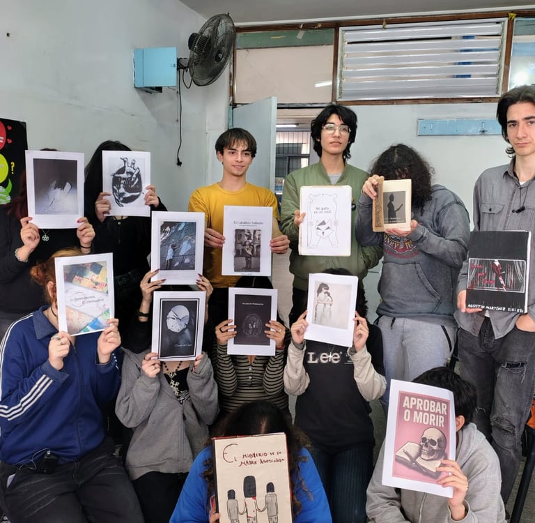 Escribieron en clase, escribieron en sus casas, y en algunos casos ChatGPT escribió por ellos. Leímos los avances, escuchamos los aportes de cada compañero y seguimos... Diseñaron una imagen para la portada de sus escenas. Leímos el resultado final y elegimos cinco escenas para representar.